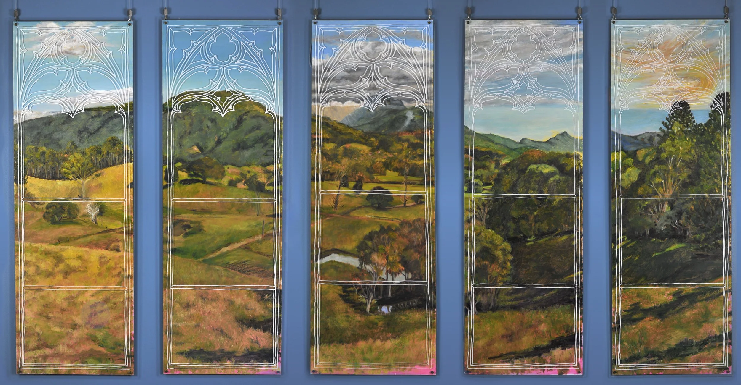Wollumbin in Five Parts (Pentaptych), Oil on aluminium - Finalist John Leslie Art Prize